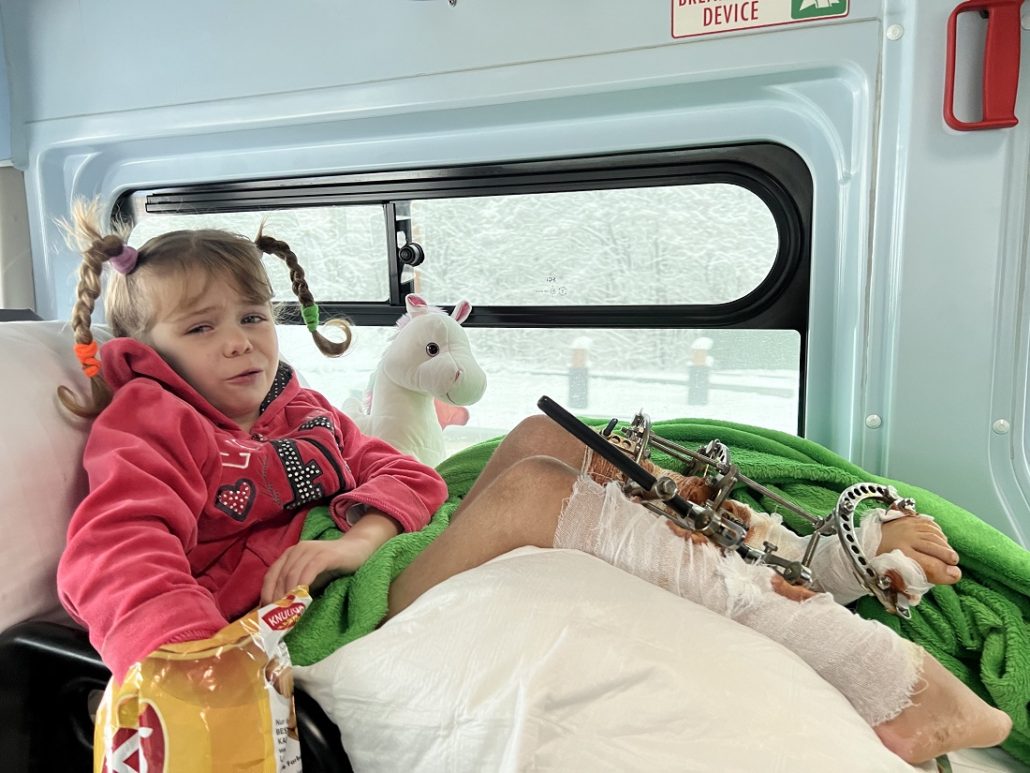 Аби повернути Ангеліні шанс знову стати на ніжки, команда Smart Medical Aid організувала евакуацію діток разом з їхніми опікунами - хресними батьками - до Віденської лікарні. Там на Ангеліну чекає операція, після якої вона зможе ходити.